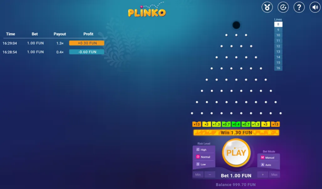 La puntata minima su plinko winnita parte da 0.10 EUR, permettendo sessioni di gioco prolungate anche con budget ridotti. Il massimo varia in base alla configurazione, raggiungendo fino a 100 EUR per singolo drop nelle modalità standard.